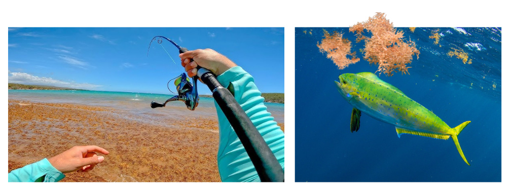 Sargassum weedlines in the open sea can be a great spot for finding big fish such as mahi-mahi. Experienced anglers know how to take advantage of them, and all you have to do is enjoy the experience. (Check out our fishing charters/packages here!)
